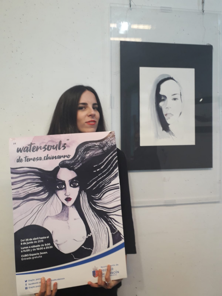 El viernes 26 de abril se inauguró la exposición “Watersouls” de la artista Teresa Chinarro Reja. Esta exposición comprende una serie de obras en técnica de acuarela donde los contrastes, sombras y el negro como principal protagonista sobre el papel virgen invaden ese espacio en blanco, transitable y silencioso.